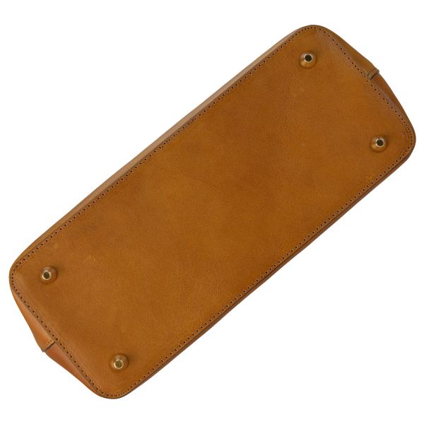 • materiál - ručně činěná telecí kůže za použití pouze přírodních činidel • zavírání - zip a obvodový stahovací pásek • jedno hlavní oddělení rozdělené středovou zipovou kapsou • v interiéru je umístěno malé LED světlo • ochranné kovové nožičky • odnímatelný kožený pásek přes rameno