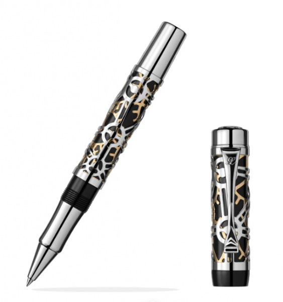 Kombinace různých materiálů. Prokládaná aplikace mosazi a akrylové pryskyřice vytvořila rovnováhu mezi lehkostí a dekorativností. Kovová část kolekce Galileo má dvouvrstvý design. Postříbřený vzor na vnější vrstvě s prvkem zkosené hrany jemně vyřezané do kovu je zkosený pro zajištění hladkého úchopu a zakrývá růžovo-zlatý vzor ozubených kol na vnitřní vrstvě. Černá trubice a stříbrný kovový vzor vytvářejí moderní geometrický vzhled. Vynikající dekorativní detaily klipu a ozdoba na víčku pera činí pero funkčním i krásným.