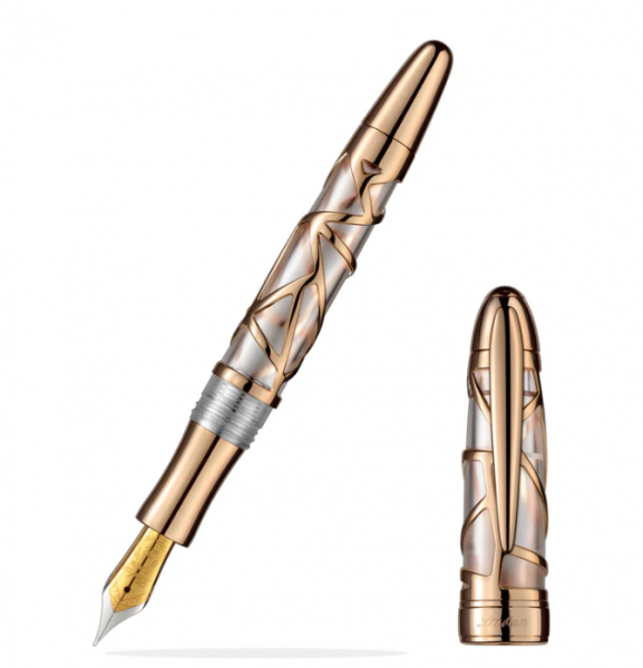 Podívejte se na krásný obří amazonský lotos, dokazuje, jak neuvěřitelnou geometrii dokáže naše příroda, což inspirovalo k vytvoření této krásné kolekce. Poetický filigránový vzor je vyroben z jemné mosazi, což ukazuje Labanův vynikající výrobní postup a chrání průhlednou akrylovou trubici uvnitř těla pera. Klasický torpédový design. Mosazný kov a průhledná akrylová konstrukce zajišťují nízkou hmotnost plnicího pera. Umožňuje také vidět inkoust v náplni. Metalický povrch. Luxusní kostra s růžovým zlatým povlakem je nádhernou volbou, jako by se dotýkala slunečního světla v dlani. Hrot z iridiové oceli německé výroby s reliéfním logem Laban. Každé pero Skeleton má svůj jedinečný vzhled. Pište s ním kreativně a vytvořte něco velmi SVÉHO. • plnicí systém: kartuše a konvertor • materiál hrotu - nerezová ocel, postříbření a iridiový hrot